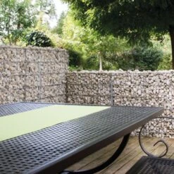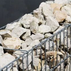 Bei der Wahl der gewĂŒnschten SteinfĂŒllung achten Sie bitte auf die Maschenweite 33 x 150 mm, fĂŒr die sich Steine mit einer Mindestkörnung von 32 mm eignen.