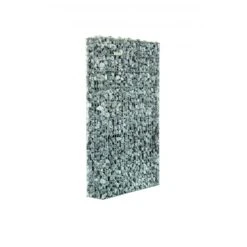 Das Komplettset besteht aus dem fertig montierten Gabionenkorb und einem Pfosten mit höhenverstellbarer Aufhängung.