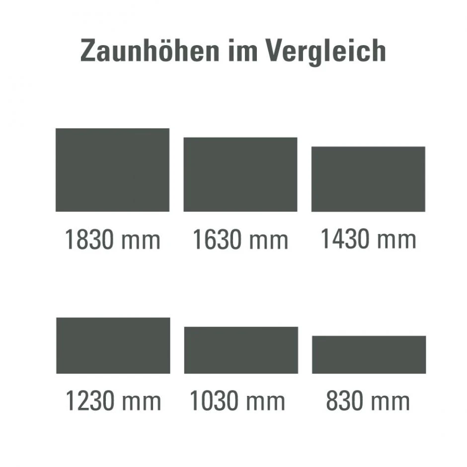 | Zaunhöhe | Pfostenhöhe (einbetonieren) | Befestigungspunkte |