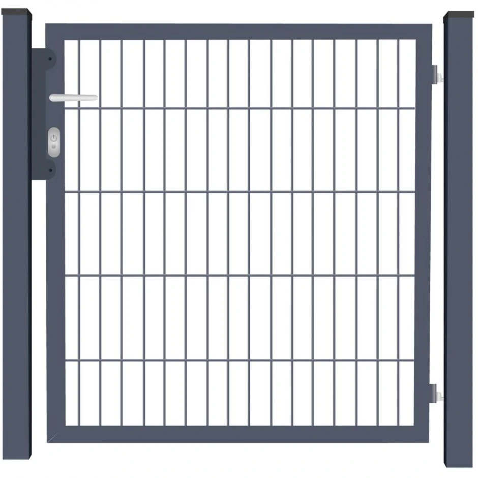 Es lässt sich sowohl DIN rechts als auch DIN links montieren und wird inklusive Zaunanschlusswinkel und Profilzylinder geliefert.