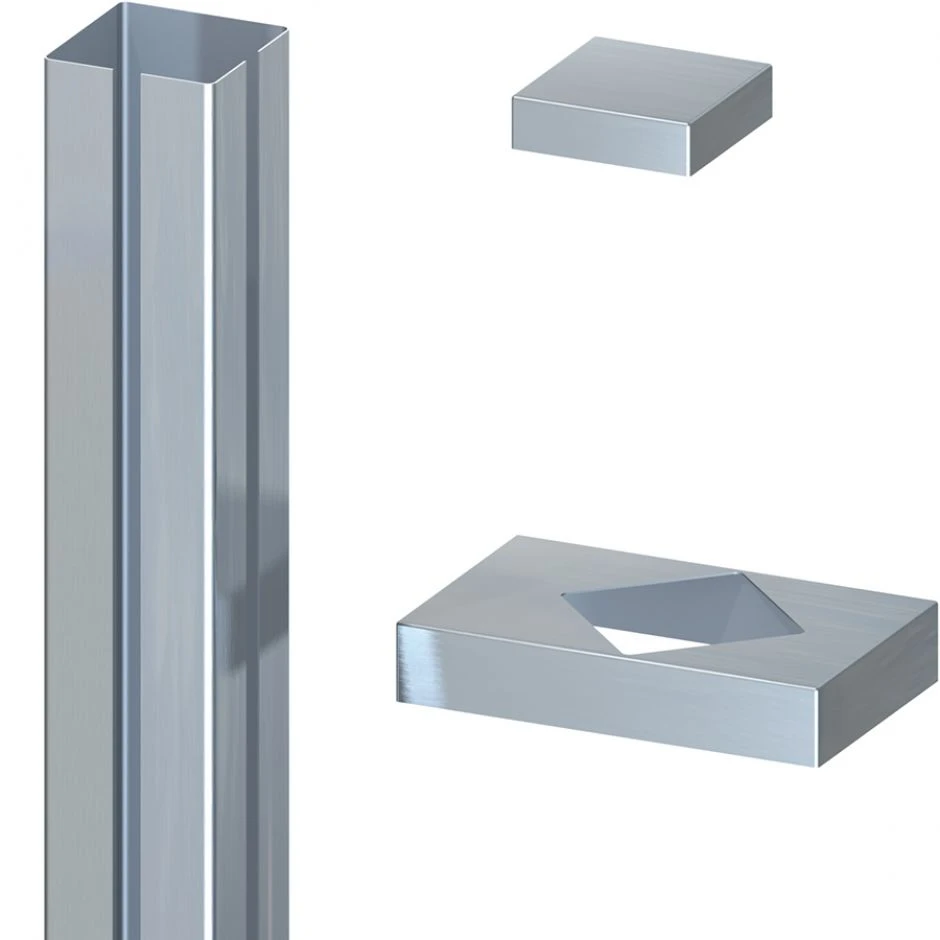 Praktisches Edelstahl-Ummantelungsset passend fĂŒr die TraumGarten SYSTEM Eck-Klemmpfosten. MaĂe 192,5 x 8 x 8 cm