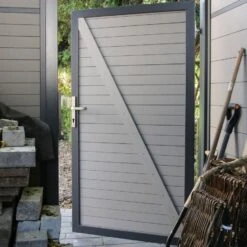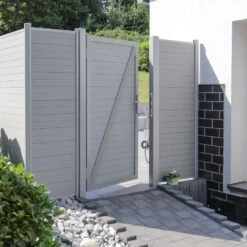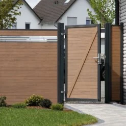 Das Material WPC besteht aus Naturfasern und Kunststoff und ist dadurch perfekt für den Außeneinsatz geeignet. Beispielsweise erhöht sich durch dieses Material die Witterungsbeständigkeit des Gartentores.