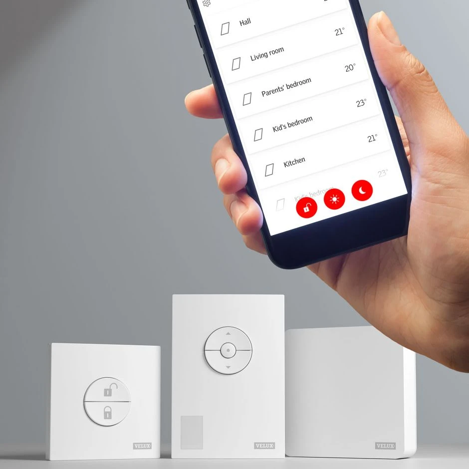Das VELUX App Control KIG 300 nach nachtrĂ€glich mit dem Raumklima-Sensor KLA 300 und dem Abwesenheitsassistent KLN 300 aufgerĂŒstet werden.